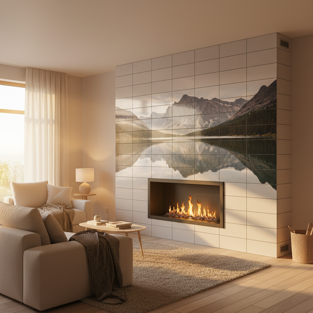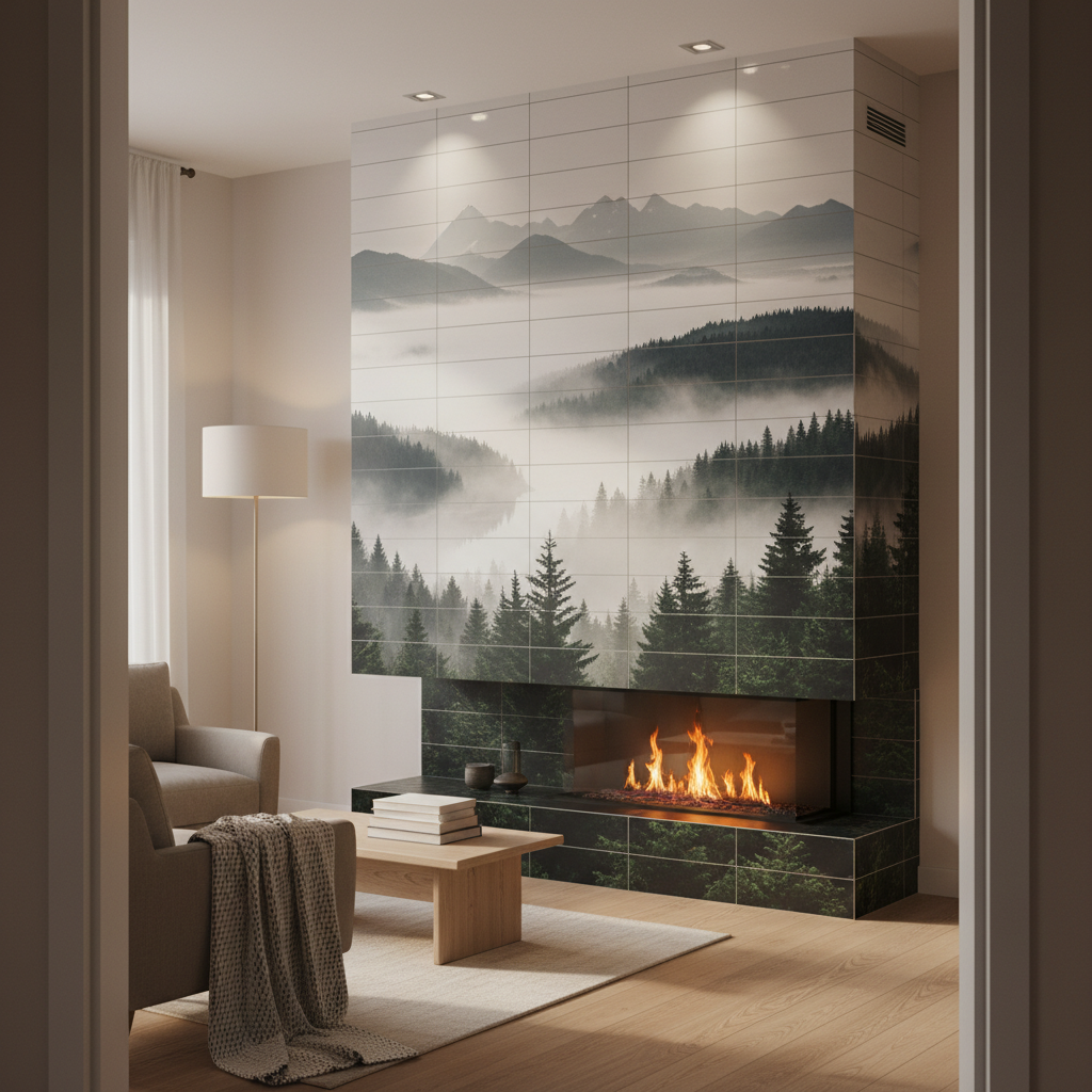 Фотоплитка и фотомозаика с УФ-печатью для зоны: Каминная зона