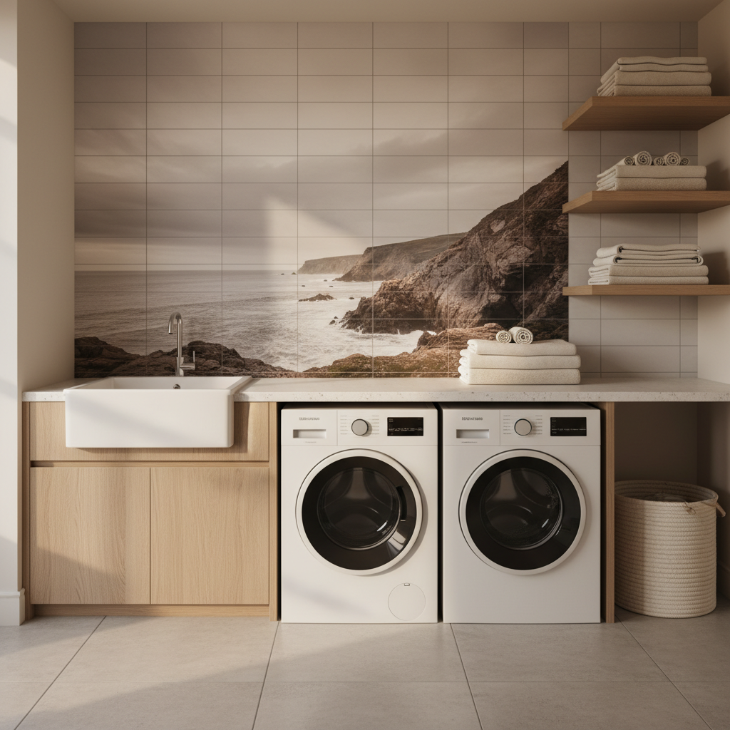 УФ-печать на плитке: цена Стоимость зависит от площади, типа основания, сложности изображения, необходимости защиты и подготовки макета. На практике удобнее считать проектом: вы получаете готовое решение под ключ - от дизайна до комплекта для укладки. Хотите быстро оценить бюджет и сроки? Напишите запрос 'заказать фотоплитку для зоны: Постирочная/прачечная' и укажите размеры - мы рассчитаем стоимость, предложим 3-5 сюжетов и подготовим визуализацию, чтобы вы заранее увидели результат.