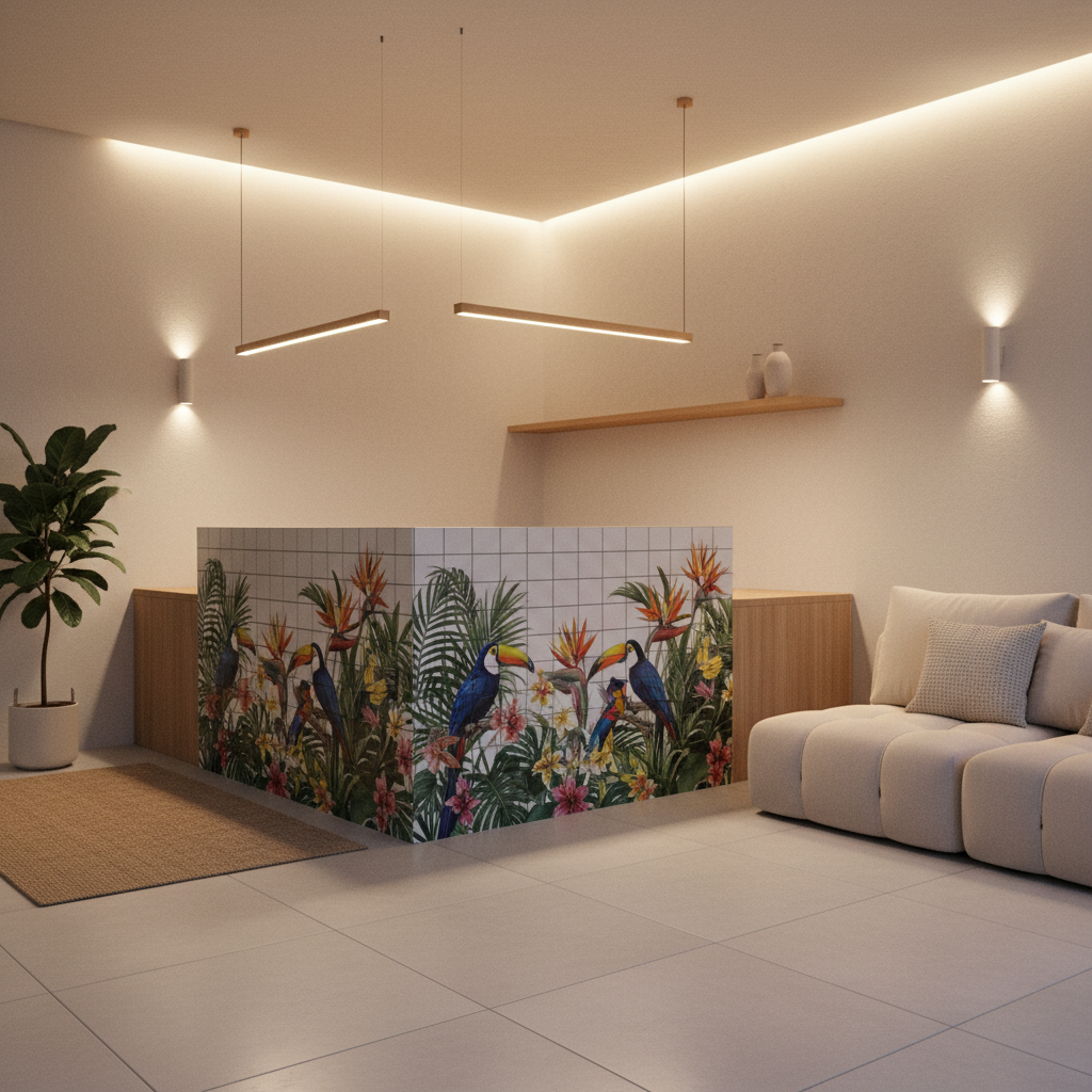 Плиточное панно на лоджии создаёт уютную «точку отдыха» и защищает стену от влаги, конденсата и перепадов температуры. УФ-печать позволяет перенести любой сюжет на керамику и собрать его в цельное изображение по сетке плитки. Плитка легко моется, не боится солнца и подходит для зон с растениями и частой уборкой. Добавьте кресло, тёплый свет и текстиль — и балкон превращается в стильную мини-гостиную. Сделаем панно под вашу геометрию и подскажем оптимальный размер изображения.